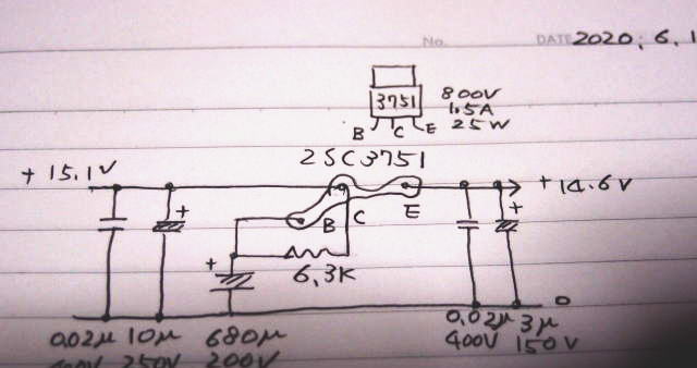 | No.157プリの2代目寄せ集めトランスによる電源 2020.02.25 下のテスター計測は上から @ +高圧約115V FA用 A +1stReg(LM350)電圧105V前後 EQ用 B -高圧約88V FA用 Aはこの後アンプ内の2stREGで+95V前後になる +115Vラインで喰う電流は+95VREG経由分も含めて35mA程度(つまりプリとして喰うもの) ![]() ※12AT7(ECC81)は実測すれば分かるのだが上の表は公表値から算出した ※12AU7(ECC82)は5.5mA程度をアイドリングしているのでこの値を使用した EF86のプレート電圧100Vのデーターが見つからないので250V3mAで計算 これで43mAとなるがプレート電圧は+95Vと+115Vだから実測値の35mAというのは妥当だろう それにしても参考とする資料によって色々な電流の数値を散見するのには閉口するが色々な条件設定で異なるから仕方ないだろう (12AT7(ECC81)実測したら2.22mAとなっていた EF86が増えるな? ) 以下のようなデーターもある ![]() ![]() @+高圧約115V FA用 ![]() 壊れたLM350A+1stReg(LM350)電圧105V前後 EQ用 ![]() -高圧約88V FA用 ![]() バラックでテスト これを木製ケースに入れる予定だ ヒータはカーバッテリでテスト と思いきやトラブル発生? ![]() 問題はこれにてハムが出ないか? 1代目よりも−(マイナス)の電圧が少し低い あとはヒーター用(実測で2.33A喰う)の10V3A程度の手頃なジャンクを見つけなければ トラブル ハムるな〜 電圧確認 すると1stREGのLM350が働いていない ほぼ入力と同じ電圧が出ているつまりEQへはREG一段で動くことになる これではハムる訳だ LM350が壊れた原因は思い当たらないがバラックなので何かとショート?とにかく交換するとハムは消えた 3端子のREGも金田式と音は比べていないが良き働きをしてくれる そのうち正規品に替えればよいのだから気にしない 正常に動作することが大事なのだから |
