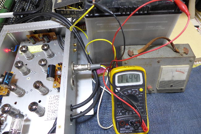 | 2020.01.02 とりあえず簡単なカーバッテリー転用ヒーターの実験 球はEF86(200mA)×5(うち1は+95VREG用) ECC81(300mA)×4 =2.2A喰うようだから規格通りだ バッテリーは少し放電していると思うが負荷をかけて11.44V 30分経過しても11.44Vは変わらない 置き場所さえあればカーバッテリーは重宝する (カーバッテリーも容量大とはいえどもいつかは無くなる 先日DCが多発 気がつくと高圧のみ印加されていた くわばらくわばら) ![]() |