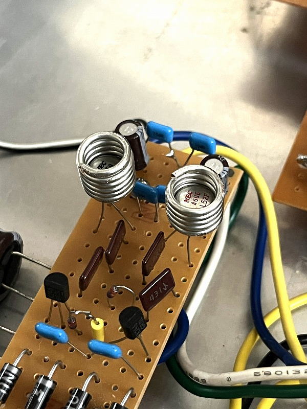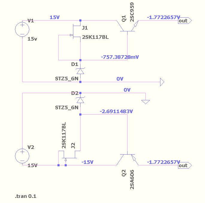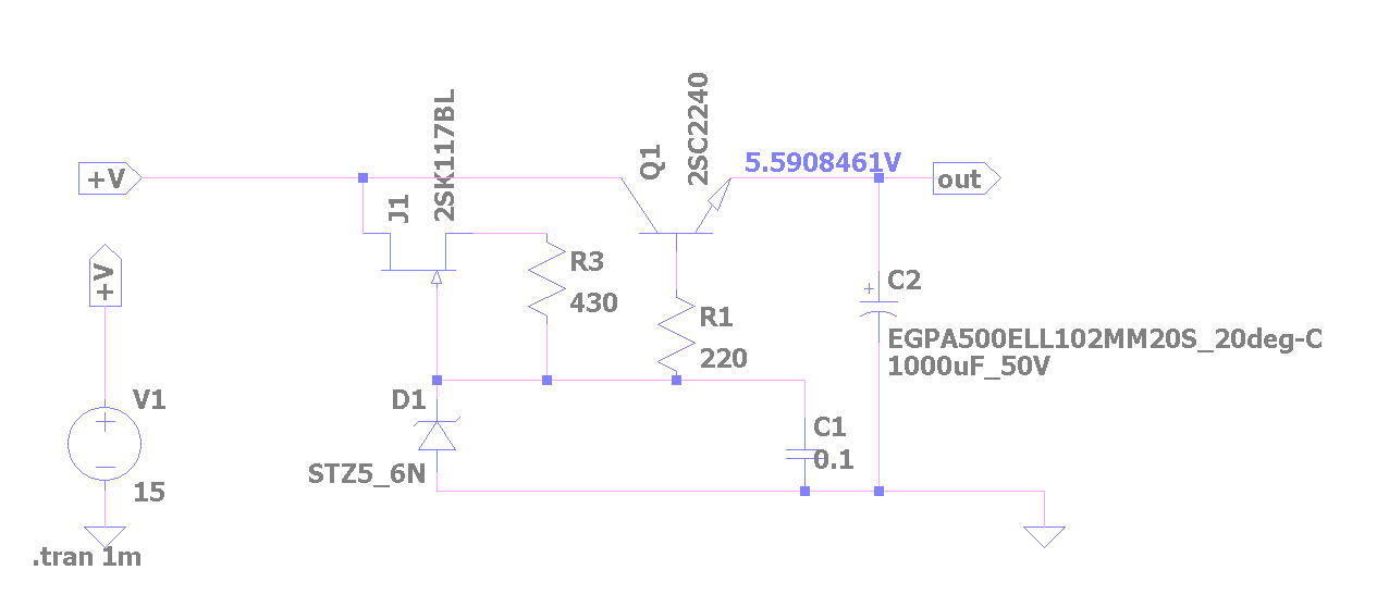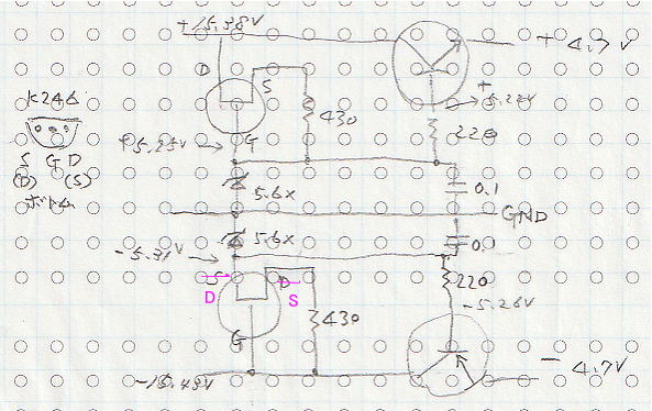 | ラインアンプ 421AパワーアンプにCD信号を入力するにはラインアンプが必要だ ぺるけ式のプリはあるが金田式のものを用意したい ジャンクボックスに使えそうな基板があったので繋いでみることにした 下の写真の通り以前に作ってそのままの基板を寄せ集めてアルミシャーシに配置した ・ラインアンプ こちらに詳細 ・ヘッドホンアンプ 218のページに詳細 ケースに入れたがその後解体 ・リップルフィルター電源 ±4.7V このラインアンプは電流出力 421Aパワーアンプは電流受けだからぺるけ式のプリのように出口に1KΩを付加しなくても良い ・この電源の負荷 ラインアンプとヘッドホンアンプの2つで42.5mA消費されている 0.4Wくらいだから959と606も裸では結構熱い 触っていられないほどだ ![]() 放熱器 リップルフィルター電源のC959 A606が結構熱い 熱いと言っても75℃位だがph7は熱いのが苦手 適当な太さの線を4~5回巻いてかぶせた TC-5キャンタイプに使用する放熱器は手持ちがない C960やA607の放熱器を外して使うのも自分としては嫌だから 始めからC960やA607を使えば良かった なおC960やA607は電源には向かないと聞いたことがあるし勿体ない(今回はテストケースだ) ![]() リップルフィルターパターン 電源の回路を追いかけると次のようになっていた 自分で作って動作が分からなくなっている? ![]() ![]() Ltspice 正負を描いてみたがうまくない ここでは負のみテストした 実際より高い電圧だ 2SK246のデーターがなくてK30にした 2SA606はあるのだがここでは汎用品とした(20250113追加) ![]() プラスも違った電源の方法で追加 ![]() マイナス側のシンプル版 ![]() プラス側のシンプル版 ![]() プラスとマイナス版を個別にシミュレーションすると正常の電圧が表示 プラスとマイナス版を一つの画面に入れ込みシミュレーションではNG 以下の通り NG ![]() このラインアンプで聴くWE-421A.5998Aパワーアンプ Ioは極めて低く設定 ![]() 入力ATT部 ①当初ニッコームで51KΩ+10KΩ -15.7db テストしたがゲイン不足 ②スケルトンで20KΩ+10KΩ -9.5db これで丁度良いかも パイオニアの一番安いPD-10 出力レベル200mVrms(1Khz、-20dB) パナソニックのDVD DVD-A450はかなり出力レベルが高いから①でも良かったが②にしないとPD-10ではゲイン不足 ②でもやや不足という感じだ DVD-A450 ・全高調波歪率 CD:0.0025% (EIAJ) ・S/N比 CD:115dB ・ダイナミックレンジ DVD(リニア音声):102dB、CD:99dB ・アナログ出力×1系統、デジタル出力×1系統、非連動の外部電源コンセント×1系統 ・リモコン:VEQ2016 ・外形寸法:460(W)×102(H)×290(D) / 4.5kg ![]() PD-10 ![]() |