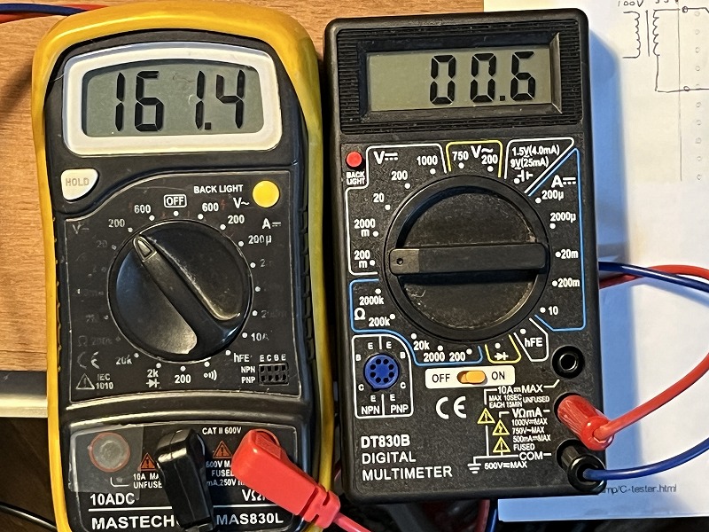 | 以上33000μF100Vの巨大ケミコンのチェック ジャンクパーツの中からワット数の大きい抵抗をチョイスして組み入れた なお10μF250Vのフィルターコンデンサーでは被点検ケミコンが容量大のため時間がかかるので680μF250Vをパラに抱かせた(トランスの左側に配置) 本当は2200μF250Vくらいのものがあれば良いのだがストックなし ![]() 金田アンプ用電源ケースをオクで入手 付属の160V10000μFのケミコンを計測 2024.07.31 合格にてこれからも使えるでしょう なおこのテスターは148Vが上限のためスライダップで110V位を出力して160V前後を実現 スライダップも一つあると色々なところに使える ![]() ![]() |
