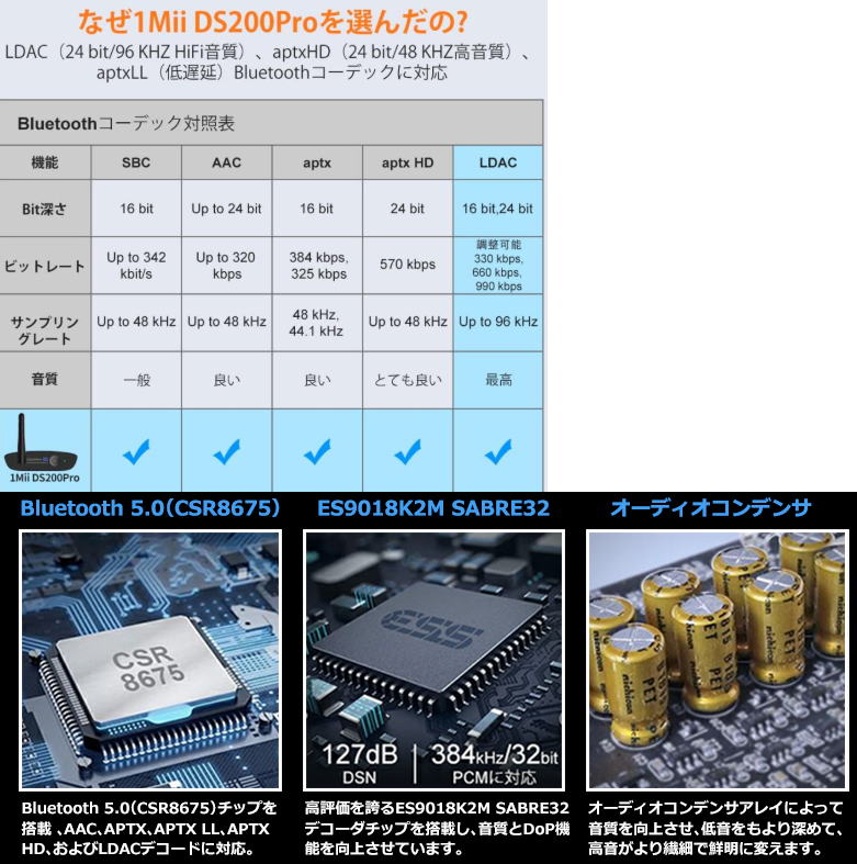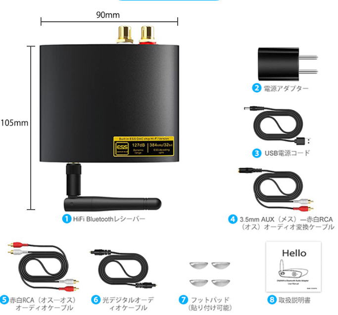 今のメインシステムにBluetooth レシーバーを付加して無線音楽を聴いてみたい衝撃に駆られこの機材をチョイス アナログレコードより音は落ちるだろうがまずは比較だ![]() ![]() DS200Pro Bluetooth レシーバー オーディオ DAC 受信機 aptx ll 低遅延 hd デコーダー デジタル アンプ アダプタ テレビ スピーカー DS200Pro ■HIFI Bluetooth転送 DS200ProはLDAC対応HiFi Bluetoothレシーバー(受信機)です。 ・Bluetooth5.0で携帯、パソコン或いは他のBluetooth対応ミュージックプレーヤーからHiFi音楽を受信し、 ・光ファイバーデジタルまたはRCA/AUXアナログオーディオケーブルで ・Bluetooth機能を付いていないスピーカー/フェッチ/ミニコンポ/に ・音楽をそのまま転送し再生することができます。 ■APTX 最大24bitのBluetooth転送 DS200ProはCSR8675チップを搭載し、APTX HD、APTX LL、APTX、AAC、SBCおよびLDACオーディオフォーマットを対応しています。 CSR8675チップは、DSP、24bit DAC及びBluetooth 5.0対応オーディオソリューションが統合されています。 APTXはSBCやAACなどのコーデックによる音楽を高度な再生する性能を誇っています。 また、APTX LL/APTX HDにもちろん対応されています。 ■超長距離伝送 Class1 Bluetooth技術を使って、外付きゲインアンテナを搭載しました。 DS200Pro Bluetoothレシーバーの最大伝送距離は30mとなっています。 ※伝送距離はは、Wi-Fiルーター、物理的な壁の障害物、金属の障害物などさまざまな要因に影響される場合があります。 ■Yahooショッピングの商品レビュー声 この商品はLDACが使えなおかつ安価です。欲を言えば実装するDACの性能が良いので、PCなどと直接USBで接続出来たら良い ![]() |