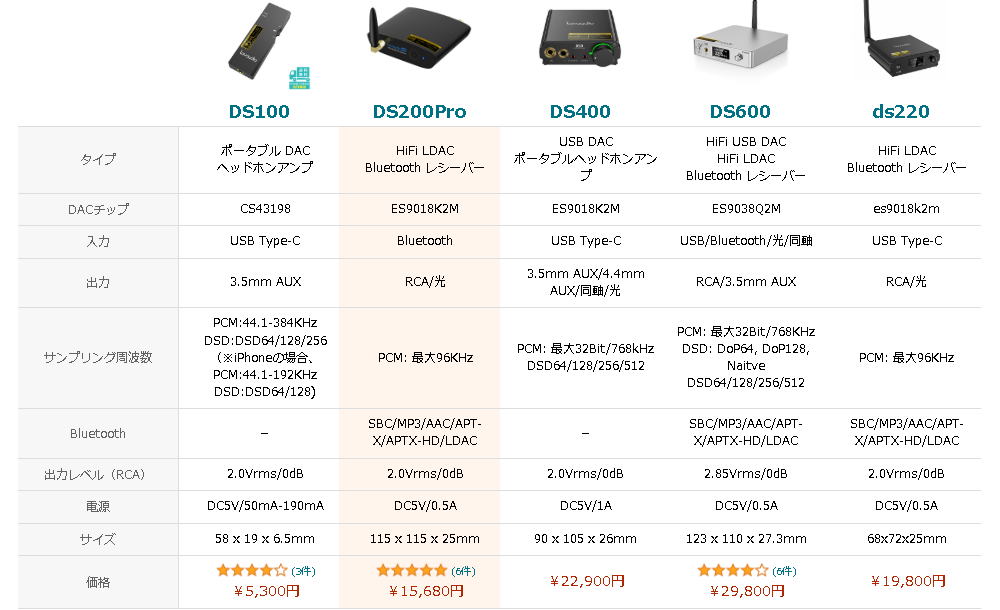 iFi audio Uno はどうする こちらはヘッドホンを常用するには良い たまに聴く程度だからこれまた勿体ない ブルートゥースが無いので拡張性がいまいちという感じでいたが色々と良く探すと今回のようなものが見つかる iFi audio Unoはメルカリで廉価にて求めた 今回のDS200はAmazonで△34%タイムセール ついつい安いと手を出す そろそろ落ち着いて見定める要あり DS200pro 20250214 到着 一番手前のアンテナタイプ 早速メインシステムに繋ぐ 問題なく音楽再生 ![]() 付属品も充実 ![]() DSシリーズは色々あるようだ 以下の表は楽天から https://item.rakuten.co.jp/nicetrade/ds200pro/ |
