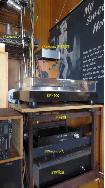 ※適当な台がなく急遽自作した木枠台に茶色をペイント 下にNo.239パワーと電源を収納 その上はNo.122プリ