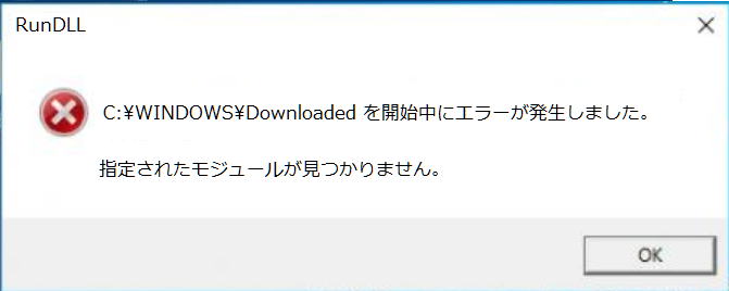 | RunDLL C:\WINDOWS\Downloaded を開始中にエラーが発生しました。 指定されたモジュールが見つかりません。 |