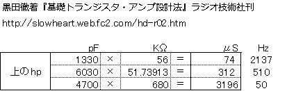 | 色々な組み合わせを見ながら金田式に使われているSEコンの1500/5100pFの手持ちが無いことから別の容量の組み合わせを検討するもうまい話は無い スチロールコンデンサにするしか無いのか 以下にコンデンサーの説明がある http://www.op316.com/tubes/tips/data8.htm ぺるけ式では-----以下http://www.op316.com/tubes/vinyl/phonoeq-v2.htmから ![]() (回路図はR2 2.7MΩだが文中2.2となっている ミスプリか) RIAA素子・・・「120kΩ//650pF+2.2MΩ//2200pF」のうち、2200pFにはDC120V以上がかかりますので耐圧が250V以上のものが必要です。650pFは、470pFと180pFのフィルム・コンデンサを並列にしています。こちらは25V以上の耐圧があれば足ります。この場面では積層セラミック・コンデンサは使えません。RIAA素子で使用するコンデンサは選別したセットを頒布しています。 (略) 利得が有限なアンプでNF方式を採用する場合は、計算上で規定どおりの時定数に合わせても正確なRIAA特性は得られません。 -----とのことで自作派の懐にはやさしい 問題は音だが・・・ |