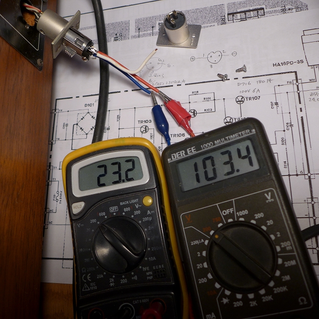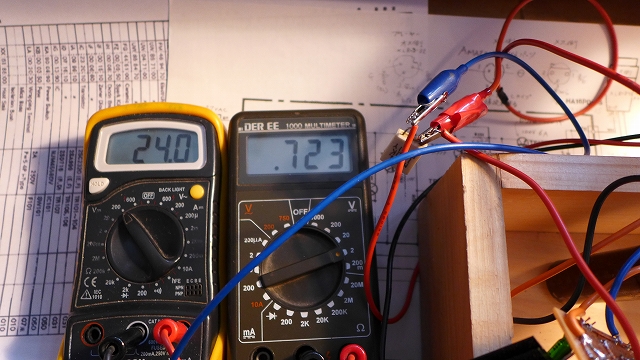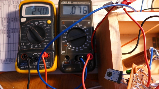 ③を箱に入れた![]() 2020.04.07 どうも①がSTART/STOPのSWon・off 時23.4Vに電圧降下したことが気になって色々と疑い出した ケミコン容量の過多 ヒューズの悪戯 etc・・・ ①待機時 START/STOPのSWoff テスターは左は電源トランスAC26.8V 真ん中は出力電圧24V 右は24Vの電流76mA ![]() ![]() START/STOPのSWon・off 時の瞬間その1 テスターは左は電源トランスAC24.5V 真ん中は出力電圧24V 右は24Vの電流683mA ![]() 〃 その2(シャッタータイミングにより数値が多少異なる) テスターは左は電源トランスAC24.3V 真ん中は出力電圧24V 右は24Vの電流722mA ![]() 回転時 START/STOPのSWon つまり通常使用時 ![]() ケースに収めた 電源トランス24V1A ケミコン4700μF50Vパラ ダイオードはV19E×4 REG基板と終段のMJ2955( 電源ロスが少ないので小さな放熱器でOK ) ![]() |