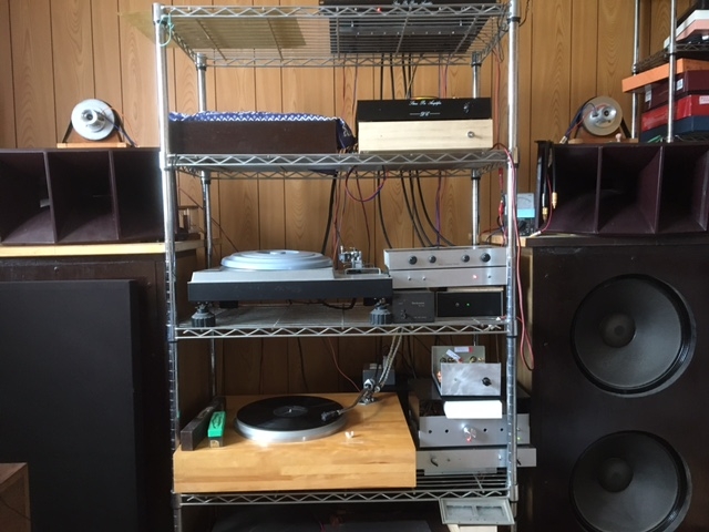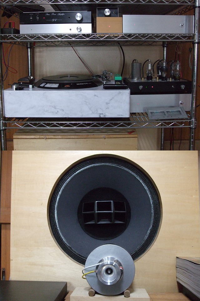 | 自室の移動(引っ越し) 旧自室は増築した家の2階にある7.5畳(1.5×2.5間) 移動先の新自室は母屋の2階の8畳(2×2間) 0.5畳の差だがこの差は大きい 1.5間の間口の現在の部屋はスピーカーを2本並べたら他に何も置けない 2間(3.6m)あると両側が50cm程度空きが出る 予想はしていたが2階から別棟の2階への移動は大変である 今回改めて実感 大きく重いスピーカーが3本 416A×2シリーズ接続が2ユニット モノ用1本は604E×1 2台あるSP10Ⅱプレーヤも重い 更に大変なのはレコードだ 2000枚前後と思うが数えたことがないので定かではない 土日に7割は移動を終えたから3日間あれば片付くと思っているが平日の月~金は仕事で午前中はNGで 意外と時間の確保が難しい 他の自動車関係の仕事も刺さり込んでくる この調子なら1週間を見たほうが良いだろう さて10日かかってやっと目処がついた 移動後ものが何処だったか探すのが大変 これでは暫くは音出しはできないと思ったがとにかく何かを動かしてみたい衝動にかられSP10Ⅱプレーヤのドライブアンプなら単独で確認できるかと回すことにしたが動かない 電源は100V安定化からなのに?そこで安定化をバスすると動いた? さて次はステレオメインシステムの音出しだが正規のスピーカーは繋がない テスト用のものを6個用意してSWonするが異常無し 移動した後は何かとトラブルが発生するものだ 普通にプラグを繋ぎ変えたときもチエックは欠かせないから今回は尚更だ ようやく正規のスピーカーに繋いで音出しするが高音のノイズが乗っている No.221真空管プリのホワイトノイズではない あるメーカーのノイズフイルターを入れていたがここからのノイズだった? フィルターを少し電源装置から離すと収まった あとは6C33C-Bパワーアンプをセットしてどうなるか まだ設置していない 次はモノーラルシステムのセットアップだ 20年使った604Eを予備に保管していた604Eに取り替えた 20年前に2本買ったものでリコーンされている 箱から出したが流石に新しくこれから20年?まだまだ使える 自分の寿命とどちらか とにかくセットアップしたがNo.219チャンネルフィルターアンプの再調整が必要となった もしかすると以前のプリアンプと違うもの(No.248)を繋いだかも知れない 今回スピーカー接続を変えた ウーファーに(-)マイナスを スコーカーに(+)プラスを ツィーターに(+)プラスを 以前はすべて正相だったが今回ウーファーを逆相としてみた アルテックのネットワークの接続図からして見るとこのような接続だ しかしこれは12db/octだからこのような接続であり No.219チャンネルフィルターアンプは6db/octだから異なった音となるだろう さらに当方はネットワークは使わないから。。。 よく見かけるのはスコーカーを逆相にしているのは見たことがあるが12db/octのネットワーク使用スピーカーだろう あとWE310Aモノーラルプリを繋いだときにどうなるかもチェツクする要がある モノーラルシステムにもミキシングIVCを使うとプリアンプを2台繋げるはずだ 以前に試したがプリアンプの出力用のスケルトン抵抗値が揃っていないとDCオフセットが発生する |