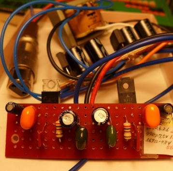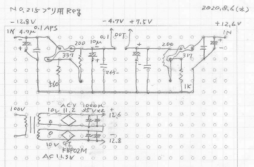従ってph7もこの3端子は極力避けてきたというより実験以外は使わなかった と思う ←バラックの実験用REG 見たとおりパーツボックスから漁ったものでニッコーム560、1KΩと0.1μFのAPS位がそれなりの金田パーツか?このバラックのREGでNo.215の気難しかったと思いこんでいたプリを聴いてみた なんとハムは皆無 レギュレーションの良さに驚く しかもADJとGND間のリップル除去向上10dBのCは付けていない 入出力差の大きいマイナス側337が317比で少し熱くなる 熱さ嫌いのph7としては放熱器が必要だ ![]() |
