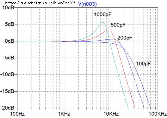 | 既存の古い基板の出番だ 上の写真の右側基板は2001.06.17に真空管モノーラルプリアンプ用に製作したもの DL-102用のもので丁度MMカートリッジの出力電圧相当なので少しの修正で使えた 当時はカップリングコンデンサーにSEコンデンサー0.1μFを取り付けていたが外して0.12μFスチロールコンデンサーとした 真空管モノーラルプリアンプのカソードはわざわざゲインを小さくするため2.7KΩでアースされていたのでこれにならっていたが今回240Ωに変更した 既定の560Ωでも良いだろうが スチロールコンデンサー SEコンデンサーはすべてスチロールコンデンサーとした バイパスコンデンサは0.22μFのV2Aが余っているのでこれを乗せた 今回の製作は左側1枚を新たに製作した 久しぶりのケースからの製作で少し手間取った コスト的にはタカチのケースも含めてLXV-OT10程度のコストになると思うが出てきた音は比較にならない LXV-OT10やパイオニアA-50のEQアンプでは中電MG-3675の高域寄りの寂しい音が今回のプリアンプではDL-103並の金田アンプの音に聴こえた ![]() やはりTM-7P フラットアンプ部はNo.159の記事通りとしたがコスモスの青色のバランスVRではクリチカル過ぎて調整できず製作後調整段階でTM-7Pの100Ωに取り替えた No.159はレギュレーターが一切無い製作のしやすいアンプだ 今回のプリアンプの電源は簡単なリップルフィルタ型の±17.5V程度のものを使った 2N3954 フラットアンプの初段は2N3954だ さすがに安定度は良いと見た TM-7Pでほぼ中間点と思われる位置で数十秒で安定する±5mVのオフセットだから EQアンプの初段もFD1840だから同様のことがいえる 4分の1世紀前に確保しておいた石だが現役で使える 今なら幾らするのか? FD1841も少しあるが今のところ出番は無い 出番なくこのまま終わっては一大事 そのうち嫁入り先アンプを造らないといけないな L部材が1本 基板吊り下げ式もアルミL部材が1本 意外と1本でもしっかり 金田先生は10mm幅のLアングルを使っているようだ 下のものは12.5mmで少し目立ちすぎ? センスが良くないが容赦 ![]() リア側はアルミL部材が1本でも基板は支持されるから裏のメンテナンスも問題ない あとはフロント側の止め方を考えれば足りる フロント側は従来どおり裏蓋に止めても良いと思う そんなに頻繁に基板裏のメンテナンスは無いだろうし基板を裏から見て配線するときに大変なのがモガミのシールドの長さを決めるときだ アルミL部材が1本でも基板が支持されていれば正確な寸法が採れる インピーダンス MM型カートリッジは、並列に100pFの容量を持った50kΩの負荷インピーダンスで受けることを想定してチューニングされるのが一般的となっていてモガミの2497シールドは線間静電容量(1kHz・20℃)67 pF/m 当方は1.5mくらいだからだいたい100pF位になるからこれ以外に容量調整は不要となるだろう MMカートリッジ使用時のフォノイコの入力容量を変化させた時の周波数特性 ![]() 参考 MCカートリッジの場合 出典 https://audiodesign.co.jp/blog/?p=886(上図も同様) MCカートリッジの場合、巻線のインダクタンスは小さいのでアンプ側の入力容量は影響しません。ただしアンプ側の入力インピーダンスは適切な値を選択する必要があります。入力インピーダンスが小さいとアンプ側に入力される信号電圧が小さくなるため(カートリッジの抵抗で損失するため)、カートリッジの数倍の抵抗値で受けるのが適切とされています。 これからすると金田アンプはかなり高い抵抗値だ 私もそうだが600KΩ以上で受けているから |