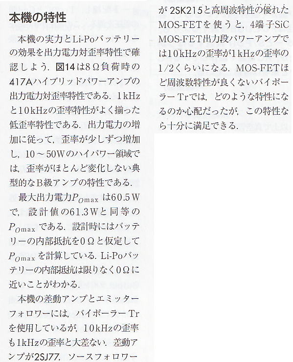 | 金田アンプNo.282 417A&6P1ハイブリッドハイパワーアンプ 差動アンプ2SA606 ソースフォロアー2SC1161のところ 差動アンプ2SJ77 ソースフォロアー2SK215 を使い好結果があったとあり 214→215としているが 77→78の言及はないものの215&77のペアの用途はまだまだ出てくるだろう とは思うもののオクでの人気は2SK215は良いとして 2SJ78は反応が無いようだ? 以下MJ無線と実験の記事参照 |