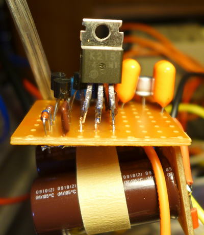 TR4 9.46mA流れ 956mWの損失だが放熱器は付けた Rk 510Ω 12.35mA流れる 高圧のパスコンはNo.244では付けていなかったのであまり重要には考えていない 今回は指定の容量ではなくメーカー不詳0.1μF450Vを付けた ゲインコントロールVRは1KΩ(B)とした 10等分の2目盛で丁度良い音量だ Aカープに拘らないが違和感は無い 抵抗値を可変するカーボン被膜も均一で良いから価格的にも性能的にも有利だ 出力抵抗 ①220Ωのところは485Ω(実測値) ②1.8KΩ 〃 1219+696Ω(〃) ①は適宜手元のもので良い(ゲインVRがゼロのときのSAOC動作不能解消抵抗だから) ②はこのようにしてNo.251プリや他のプリとも抵抗値を合わせないとそれぞれのプリを換えるたびに受け側のチャンネルフィルターアンプとの整合がうまくないためオフセット電圧が発生する その都度調整するのは面倒なのでここの抵抗値は必ず合わせる ヒーターReg 2021.08.30追記 現状はAC10Vを使いDC+13.2Vをヒーターに使っている これはWE310Aモノーラルプリアンプにも使うためだ このためこれを使い6.3Vをヒータに流すからLM338は相当熱くなる(なっている) 大げさだがもう一段以下のRegを入れることにする これで熱さは半減した ヒーター電流は0.525A 損失は3.6Wから半分になった ![]() |
