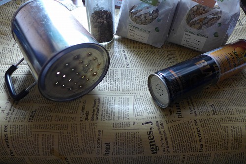 | シンプル is ベスト | 自分の飲みたいときに豆を煎る。煎る前なら常温に通常保存しても酸化しないらしい。煎ると酸化が始まり味が悪くなると。 左の空き缶でも出来るが、下の方法の方が、缶の中に熱がコモってローストという感じかなと思うのだが。 ![]() 煎り方は簡単だ。空き缶を2つ用意して①に30gの豆を入れ②で蓋をする。これがまた、丁度のきつさで納まるのだ。②の端の方を持って、ラジアンヒータ(ガスコンロの方が良いかも?)の上で5分ほど振ると完成。好みの濃さでどうぞ。なお、①の缶の底には釘で穴を空けてある。 ![]() そのうち、自動でクルクル回る装置を考えよう。 ![]() |