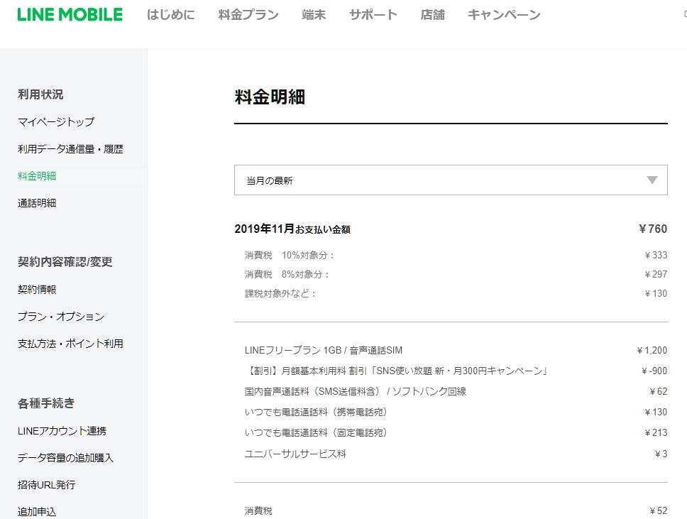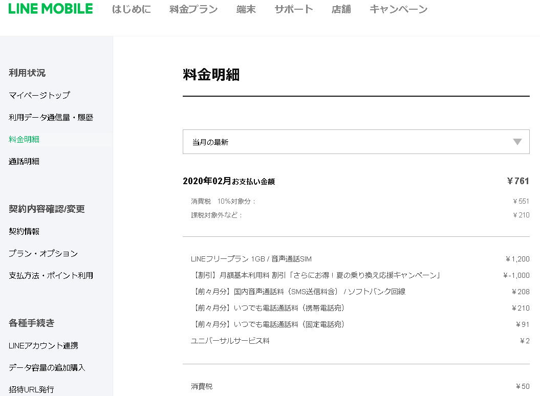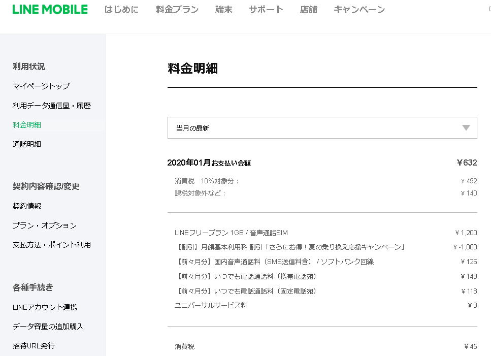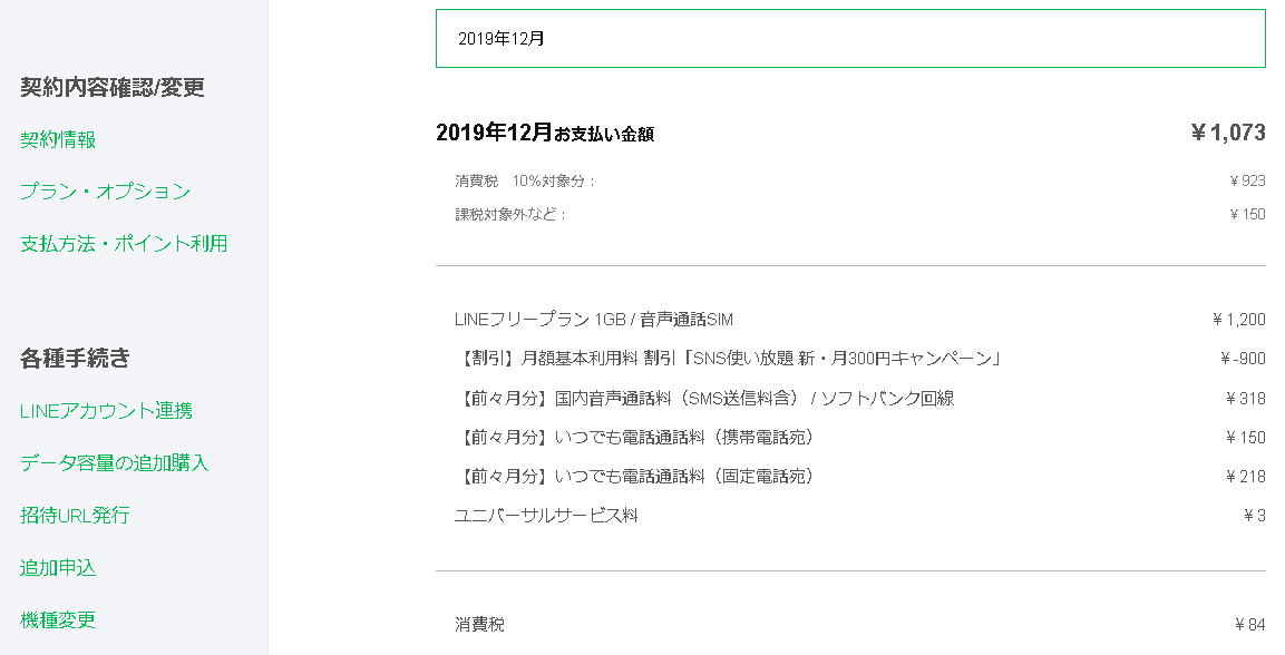 今月(8月使用分)の請求だ 電話とショートメール分は来月になるようだ