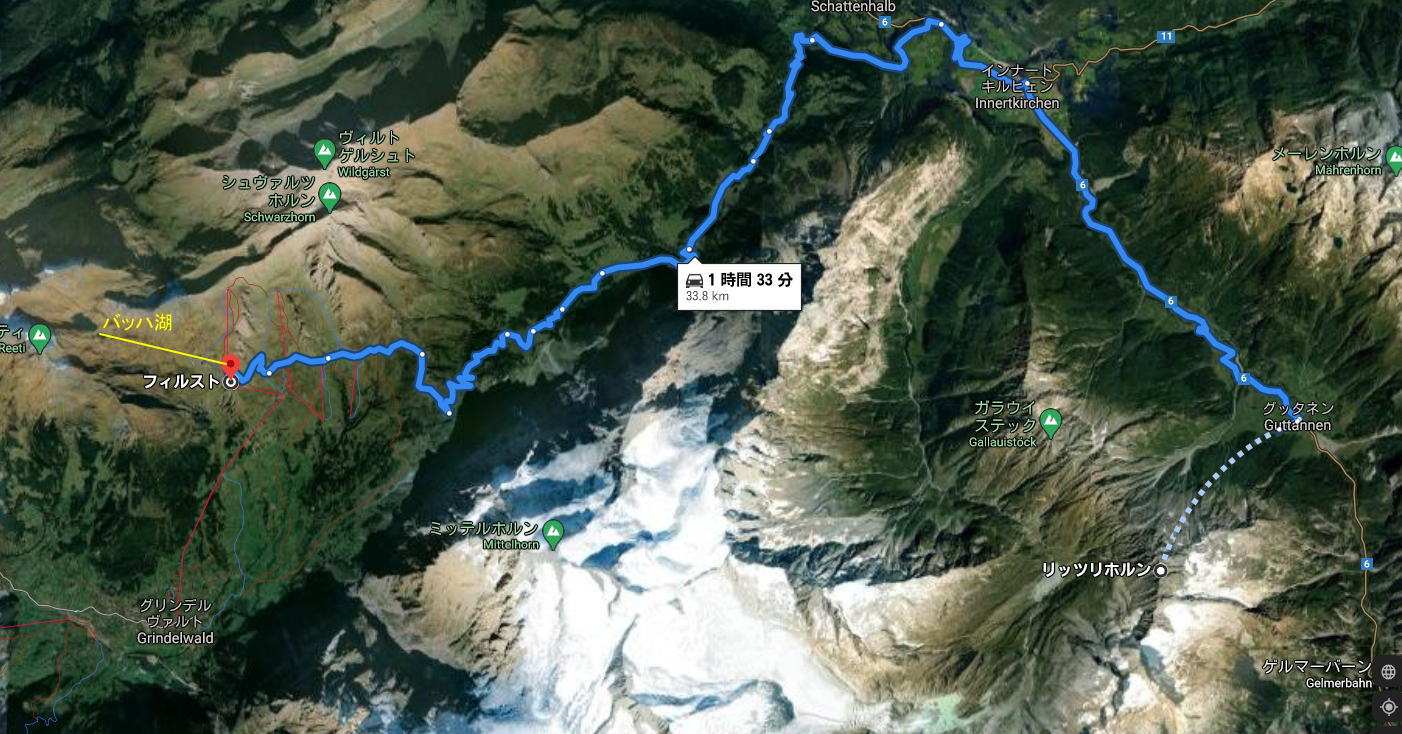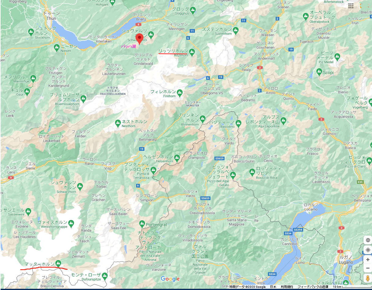 | https://www.google.com/maps/@46.6696944,8.0199643,575m/data=!3m1!1e3 にアクセスして右下の どうも黄色丸がそのポイントのようだ |