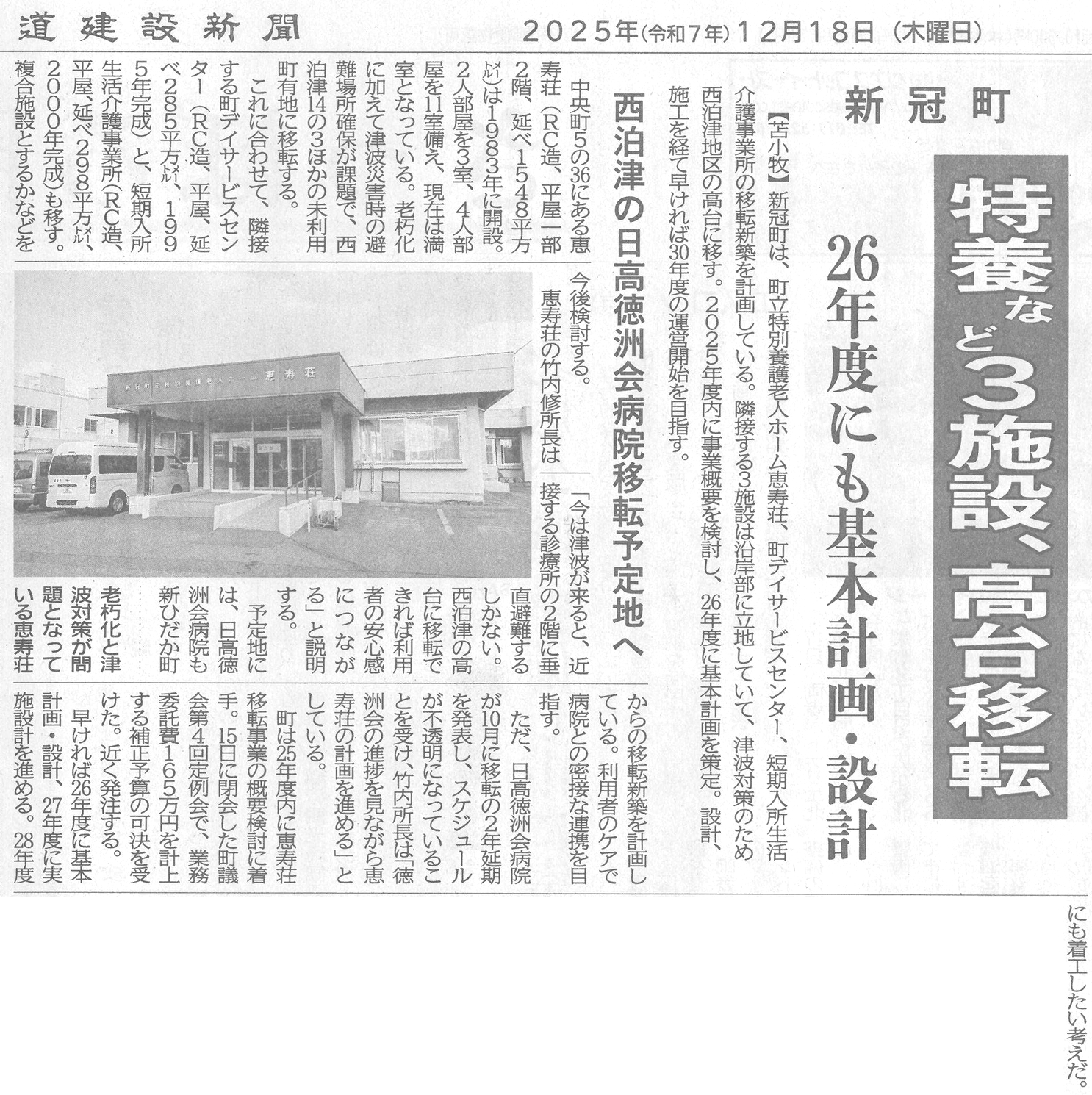 05.01.25 新冠町立国保診療所、新築へ 25年度開院、避難所機能も 02.01報知追加