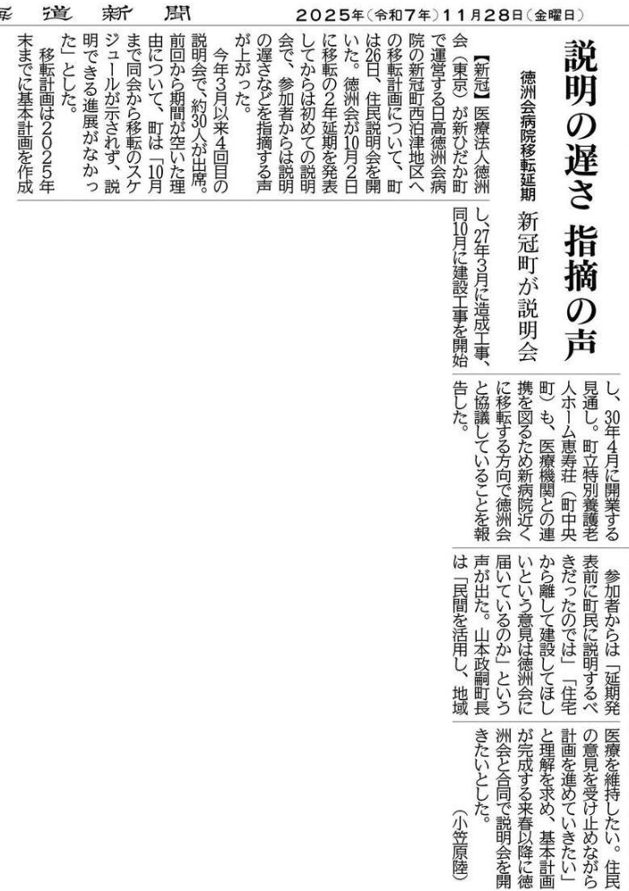 26.11.26道新に以下の報道があった。