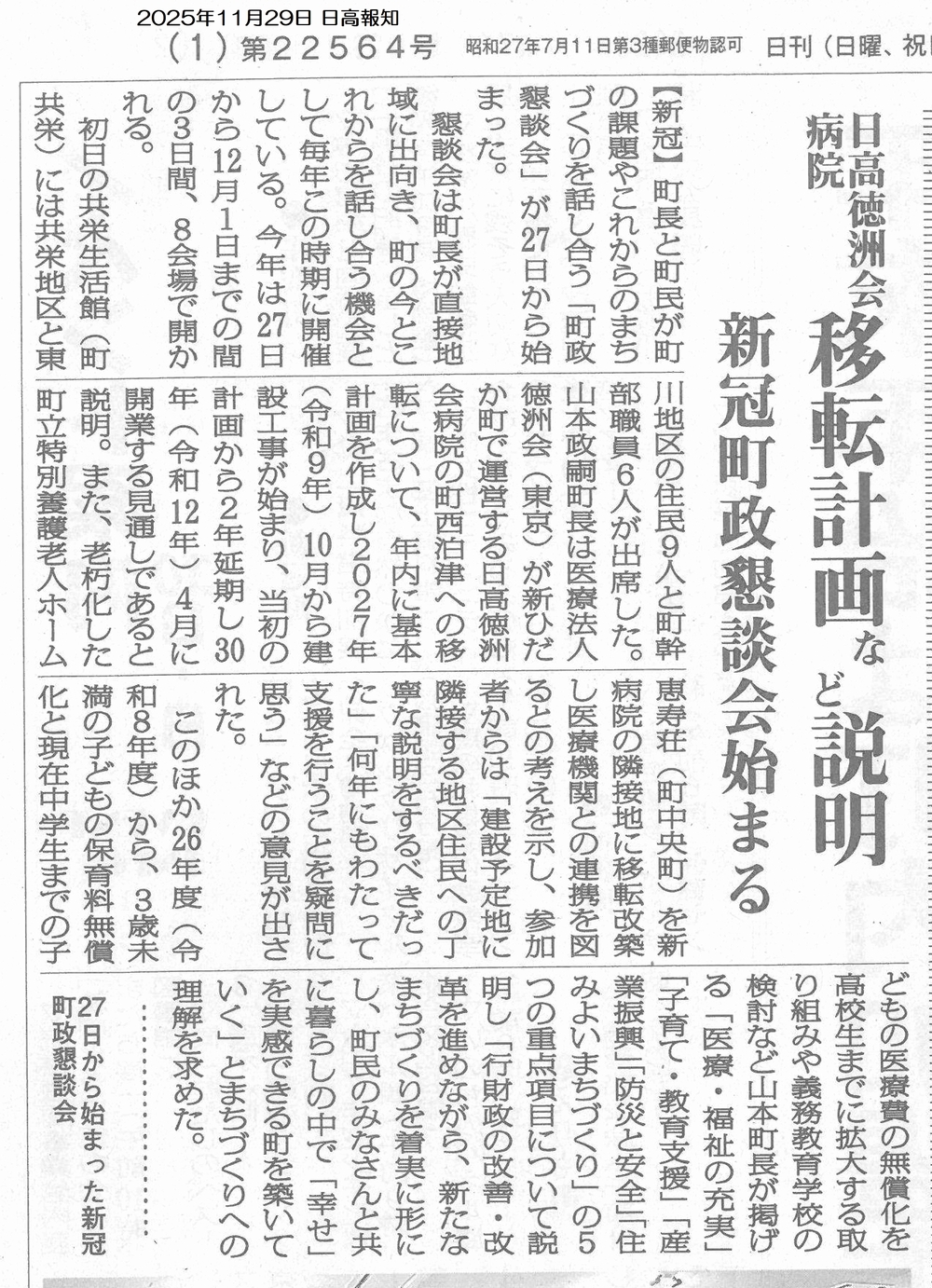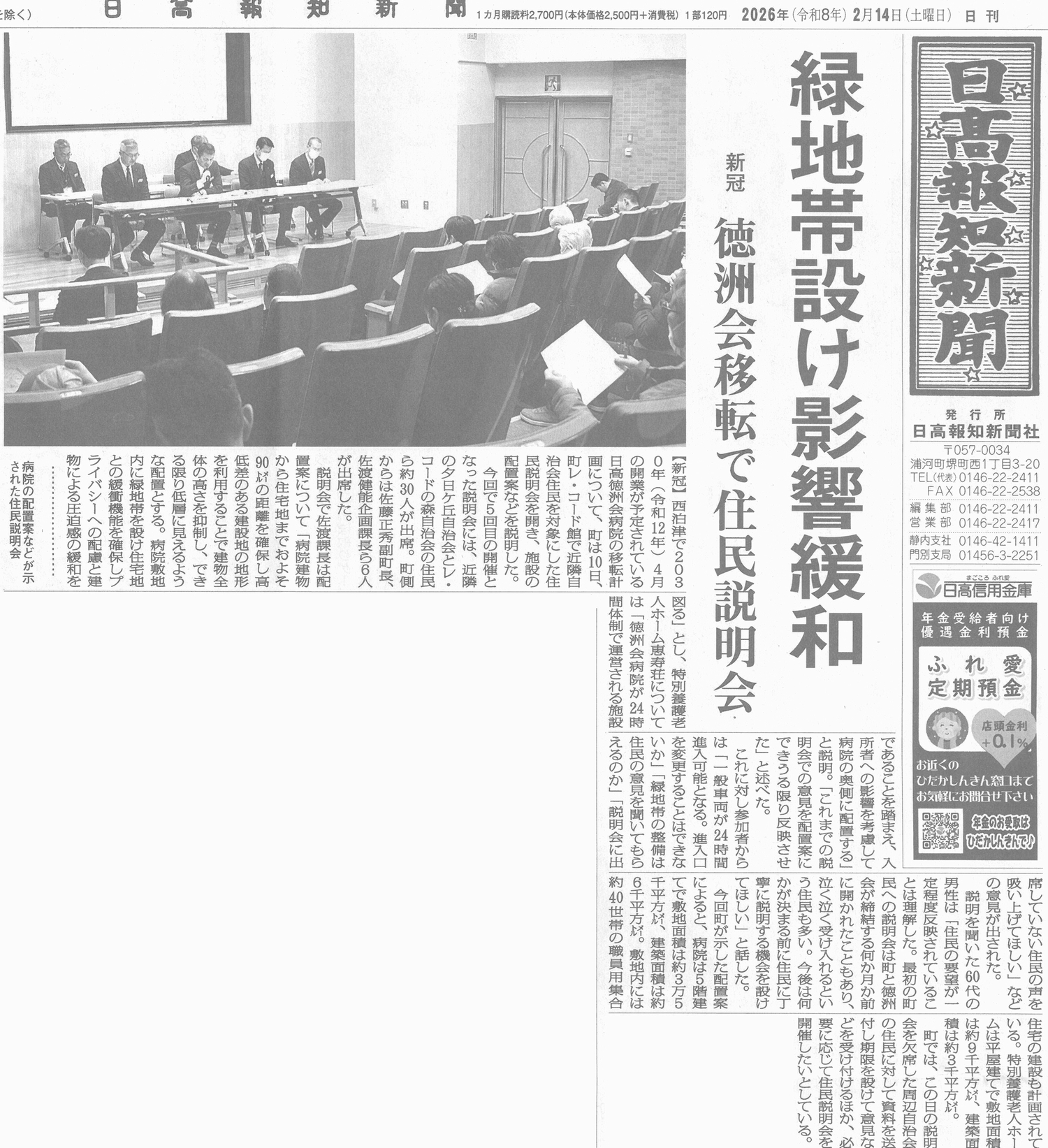 30.02.25 国保診療所有床化へ向けて 日高報知新聞
