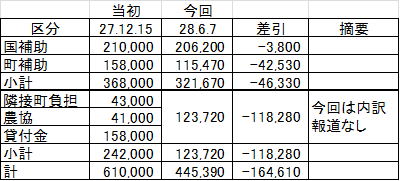 残 4千万円強は農協負担と議会だよりに出ていました。