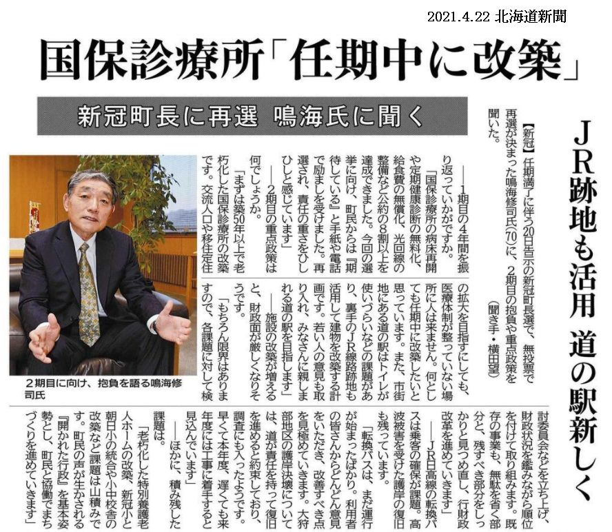 まずは町民に身近なことから ひとつひとつ片付けていくんだな~ 病院 特別老人ホーム 以下は北海道新聞 日高報知新聞から引用しました ありがとうごさいます 2021.04.21北海道新聞