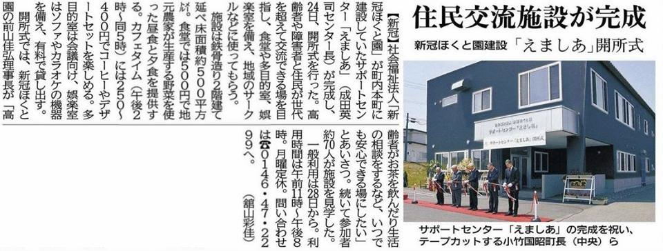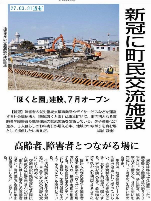 通称にいかっぷの「ちびっこ広場」に建物が。。。ということは以前に書き込みましたが、具体的にな内容が報道されました。私の自宅のほぼ前なので進捗状況を楽しみにしています。500円玉を握ってこの施設に通う自分が目に浮かぶ自分を否定している。ハハ 27.03.31北海道新聞より