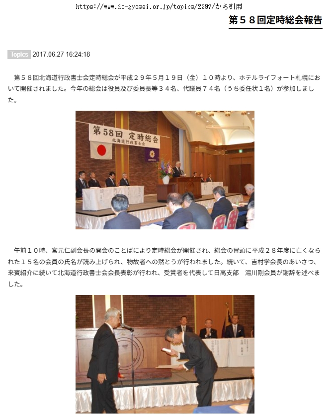 2017第58回北海道行政書士会総会にて