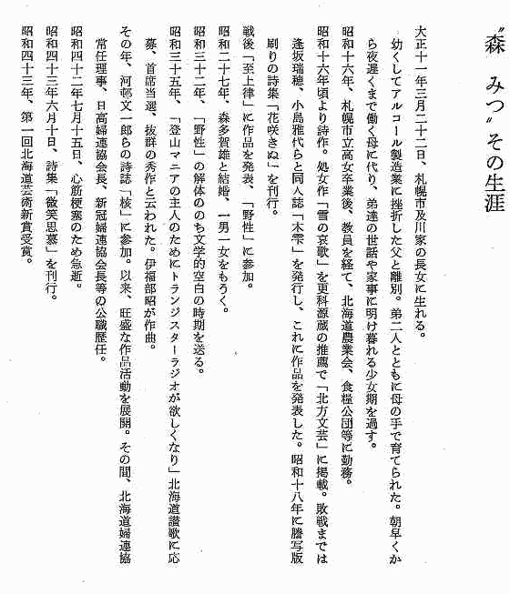 作詞 森みつさん(67’7月(昭和42年)没、翌年には、第1回北海道芸術新賞受賞)
